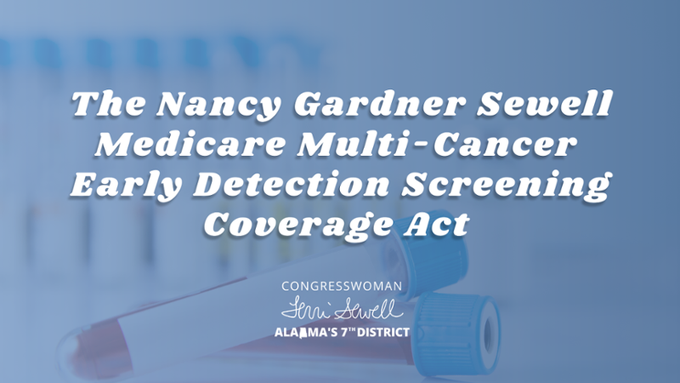 “No family in America has been spared the scourge of cancer,” said Rep. Sewell, lead Democratic sponsor. “Fortunately, innovative multi-cancer early detection screenings are emerging which hold the potential to detect cancer earlier than ever before. I’m proud to once again introduce the Medicare Multi-Cancer Early Detection Screening Coverage Act, named for my late mother Nancy Gardner Sewell, to ensure that our seniors can access these tools once they are FDA approved. Not only will this bill save lives, but it will also help reduce the glaring racial disparities in cancer diagnosis and death. I look forward to harnessing our momentum from the 117th Congress to get this bill across the finish line!”